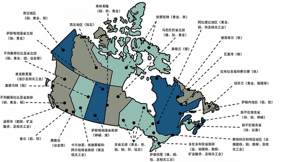 加拿大矿产分布▲