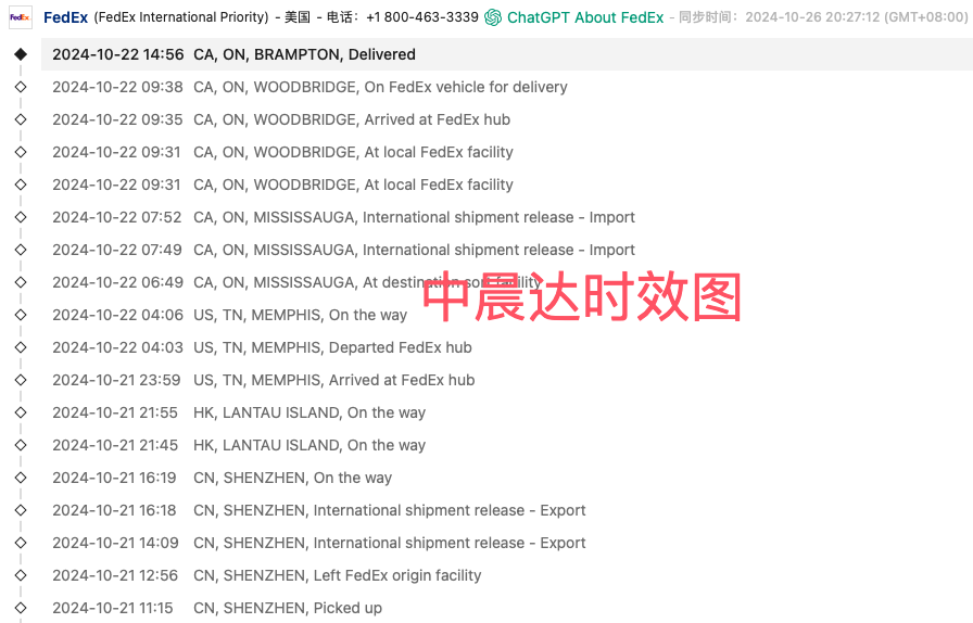 中国大陆出口到加拿大只花了一天时间就签收了,21号交给联邦 22号显示签收,这真是惊呆我了。好产品分享大家,这个渠道是大陆联邦IP(CNFEDEX-IP)当天提取,如果你的货赶时效,可以赶中午的航班直接飞走,且每周基本都会放出促销价格,美国/加拿大 促销价格是联邦填仓放出来的,性价比很高,这价格这时效,谁不迷糊。可以关注每周群里发的促销价格截图哦。深圳货代---中晨达物流,大陆联邦一手庄。